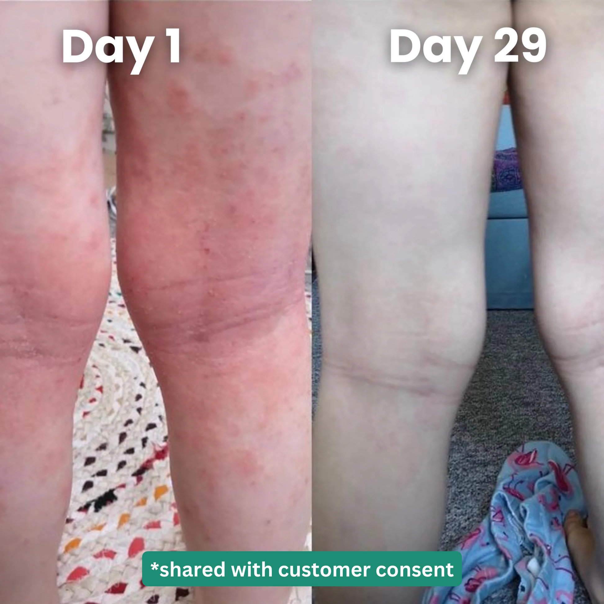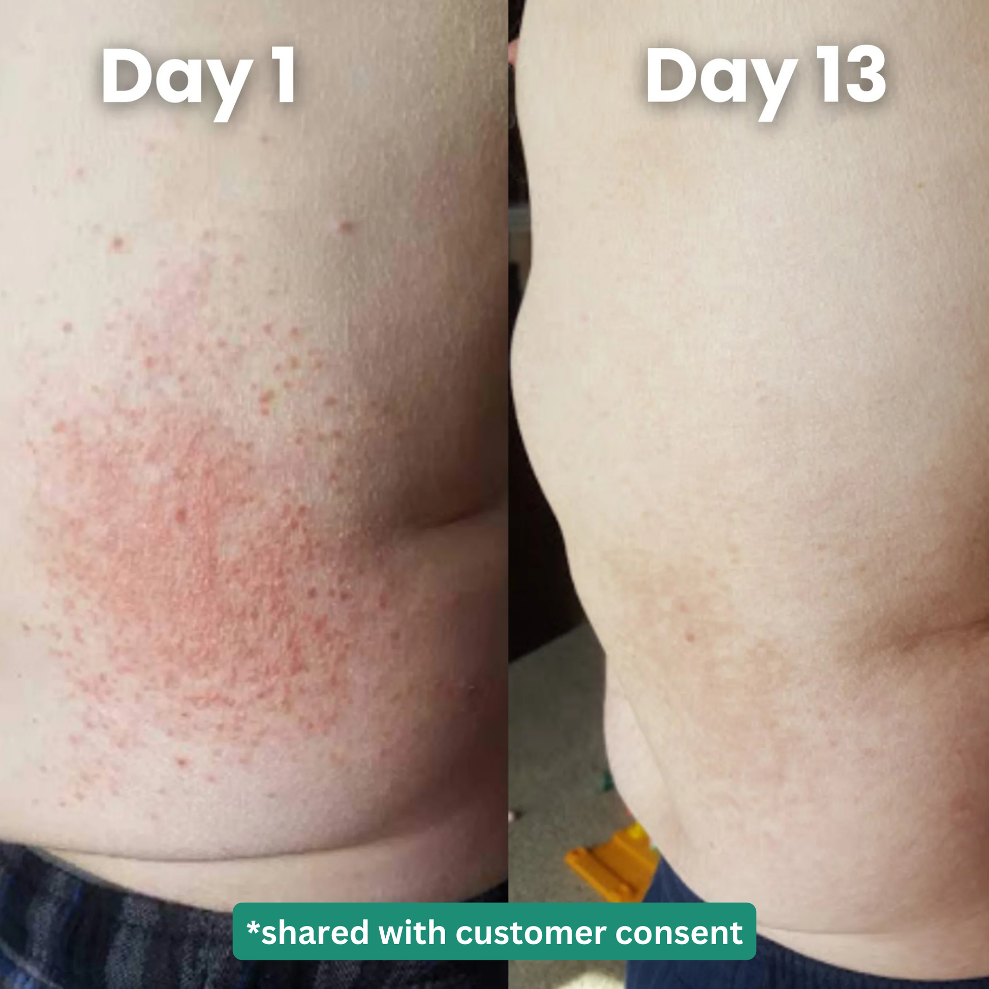 Many customers notice calmer, more hydrated skin overnight, with significant relief within a few days. Consistent use helps repair the skin barrier, reducing future flare-ups.